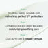 ツボクサエキスが配合されており、外部環境によって炎症を起こした肌に潤いを与え、鎮静します。肌の内側を潤いで満たす緑茶水を配合。