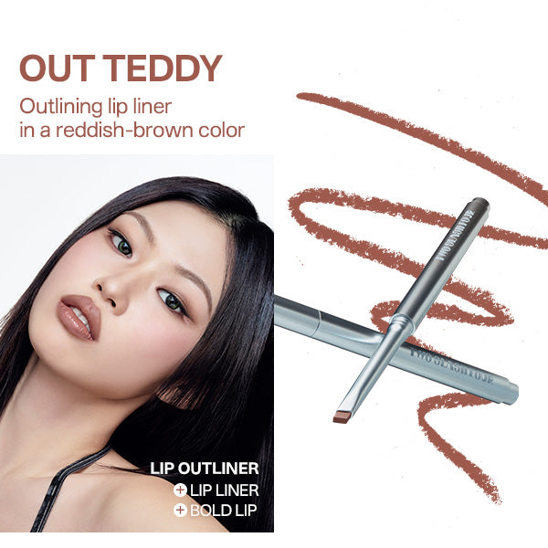 OUT ROSY:左右非対称の唇の輪郭を補正し、描きすぎた唇など、思い通りの唇の形を自由に作れるリップライナー