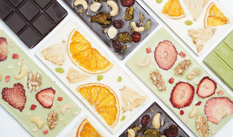ナッツをトッピングした紅茶風味のチョコレート、